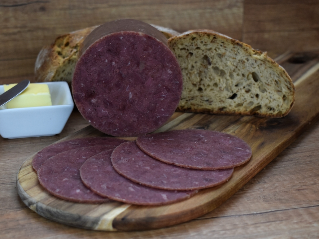 Die Geschmacksrichtung dieser Wurstspezialität ist: fleischig, Pfeffernote, fein würzig.
