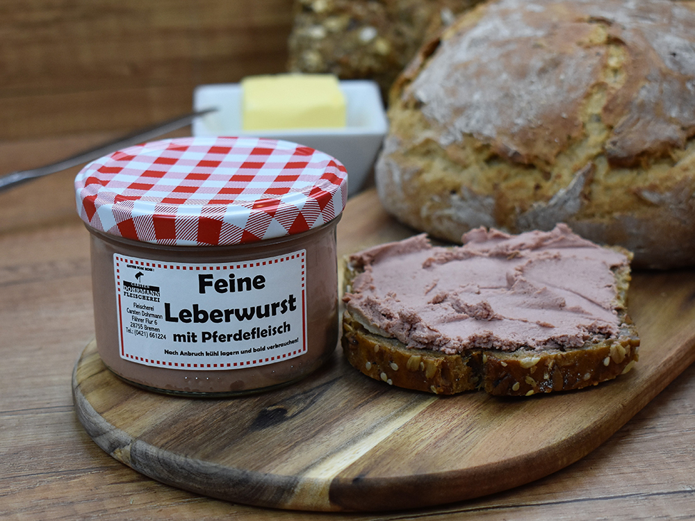 Trotz der Verwendung von Pferdefleisch hat diese Leberwurst einen feinen sahnigen Geschmack, ideal fürs Brot.