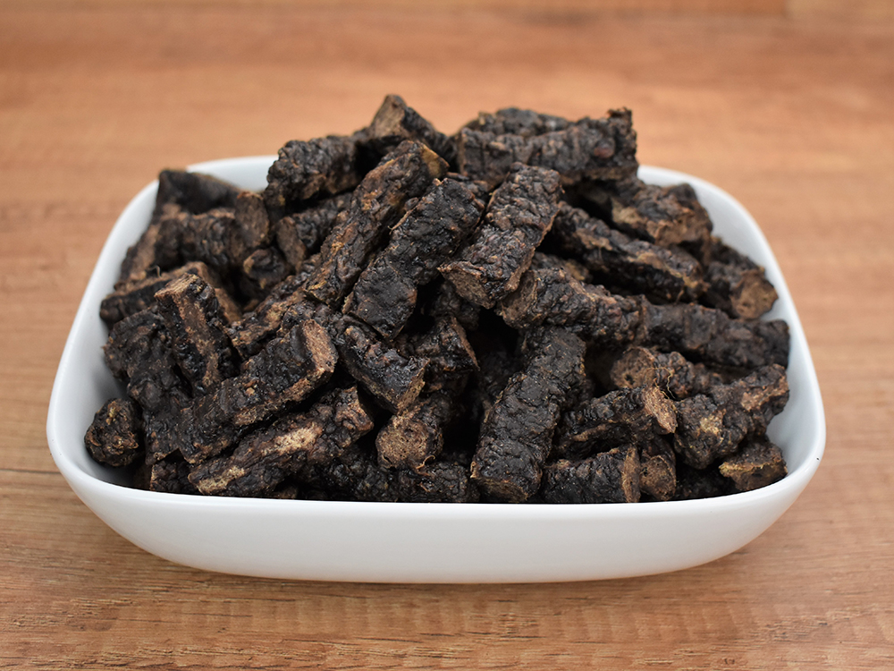Unsere getrocknetes Pferdefleisch stellen wir aus 100% reinem Pferdemuskelfleisch in Lebensmittelqualität her.