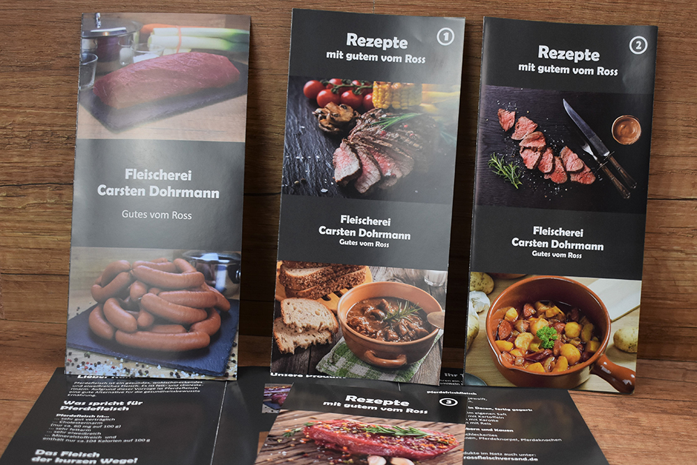 Sie finden in den Flyern viele nützliche Informationen und viel Rezepte rund ums Rossfleisch/Pferdefleisch.
