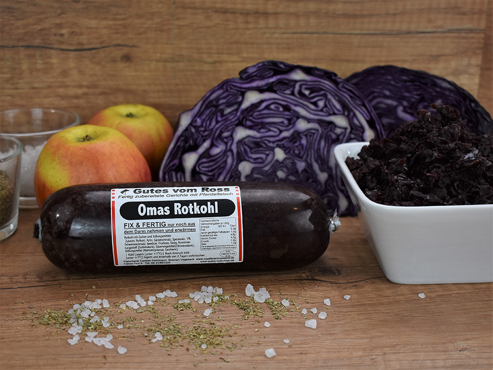 Diesen Rotkohl gibt es bei uns traditionell zu vielen Pferdefleischgerichten dazu.