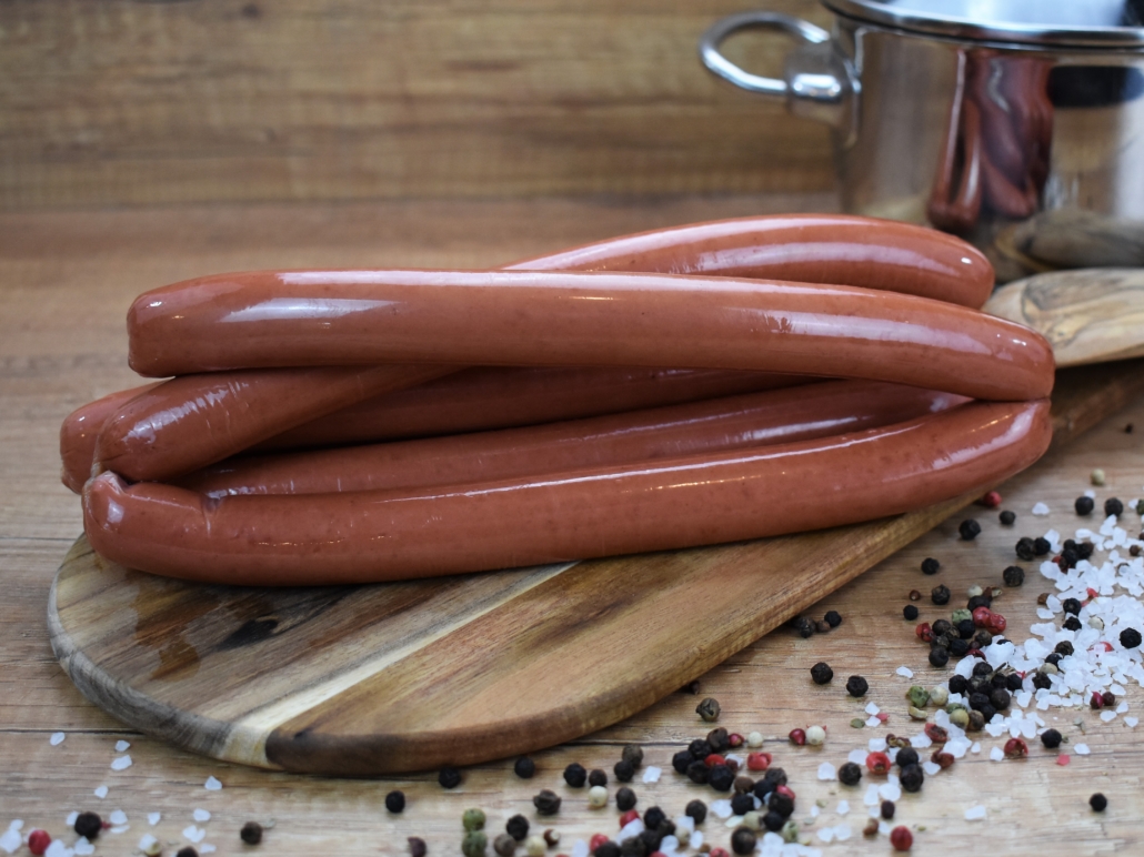 In der Eigenhaut, daher zart im Biss, ob warm gemacht, aus der Pfanne oder vom Grill, alles geht.